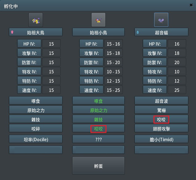孵蛋时,子代一律跟随母方,想孵出什么,母体就要选择你需要的精灵。