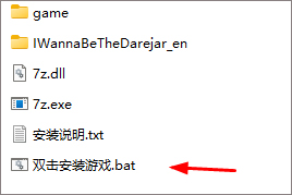 1、在本站下载压缩包后解压,得到i wanna be the darejar游戏包,双击安装游戏.bat文件,会弹出弹窗,无需操作点击任意键退出即可;