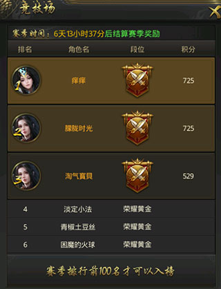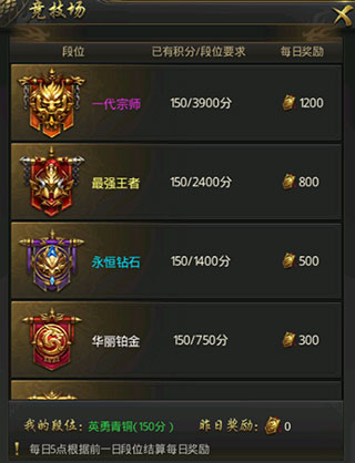竞技场是勇士们第二个能接触到的PK玩法,同样的每天拥有10次挑战机会。和野战不同的是,竞技场是采用赛季段位制。