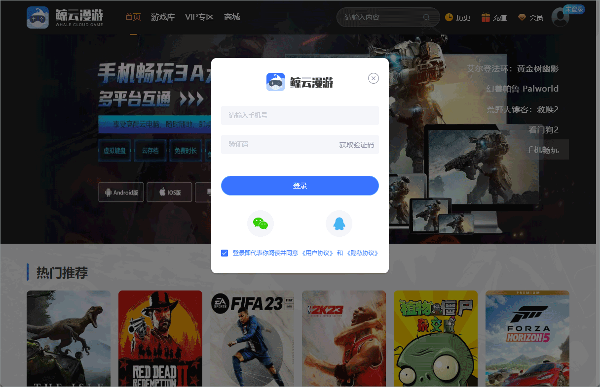 鲸云漫游电脑版是一款超高人气的云游戏平台,专为游戏爱好者设计。它通过云端技术,让用户无需下载或安装游戏,即可在PC上畅玩各类大型游戏,包括《赛博朋克2077》《原神》等热门大作。该平台支持4K超高清画质和低延迟体验,确保游戏流畅运行。鲸云漫游PC版提供海量游戏资源,用户可即点即玩,无需担心硬件配置不足。此外,鲸云漫游电脑版还支持跨平台兼容,用户可在手机、电视等设备上无缝切换游戏进度。另外新用户在这个平台注册即享免费试玩时长,每日登录还可获得额外奖励,有需要的用户可以在本站免费下载体验。