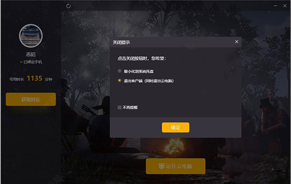5、这样即可免费获得获取时长,拥有时长后,点击“运行云电脑”按钮,会出现测速和选区界面,用户可选择延时最低的区,点击确定。