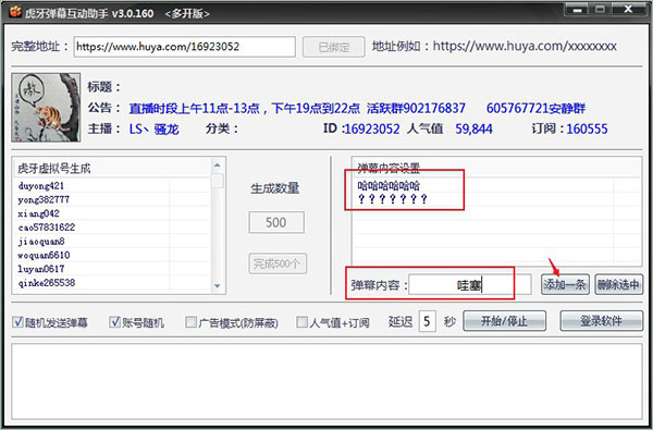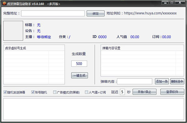 虎牙弹幕互动助手是专门为广大虎牙主播们提供的一款弹幕人气工具,支持弹幕管理、虚拟账号自定义、弹幕内容自定义等等功能,可模拟虚拟账号在直播间发弹幕,并且弹幕可自定义内容,轻松即可提升你直播间的人气。此外,该工具还拥有订阅和在线的功能,不仅操作简单,还完全免费,可满足你所有的弹幕互动需求,新增的弹幕词云功能,可以将主播整场直播的弹幕进行整合,快速了解整场直播中观众们的讨论热点,想要成为人气主播么?虎牙弹幕助手你值得拥有,快来下载试试吧。