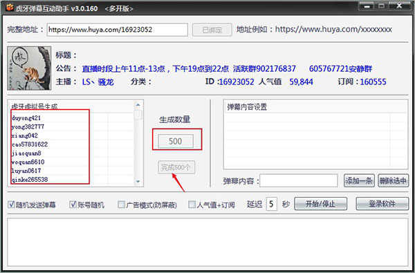 7、之后点击开始即可最下方便有弹幕消息啦。