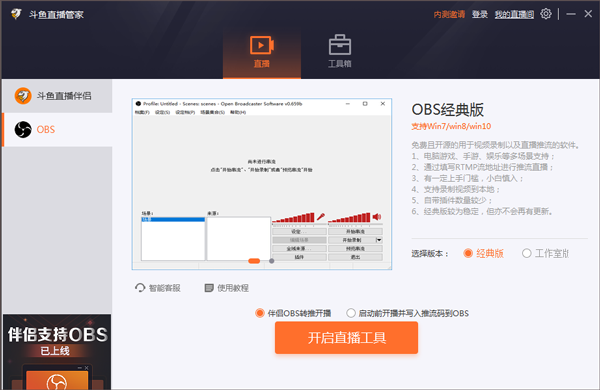 1、 安装完成斗鱼直播管家,登录后,点击【开启直播工具】