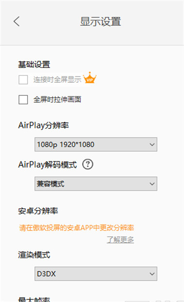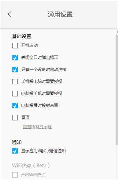 5、点击设置按钮弹出进入设备设置页面,该页面可以进行通话设置、显示设置和截图录屏设置等,