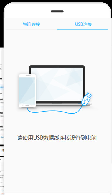 4、点击USB连接按钮可以通过链接USB数据线进行设备链接,