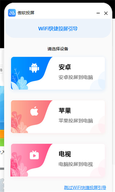 1、双击傲软投屏破解版软件,进入设备选择页面,点击选中设备即可进行软件投屏操作,