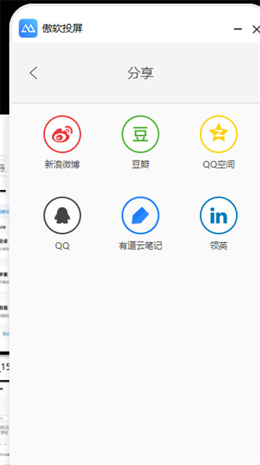 9、点击分享按钮进入设备分享页面,该页面可以将软件分享到新浪、豆瓣、QQ等。