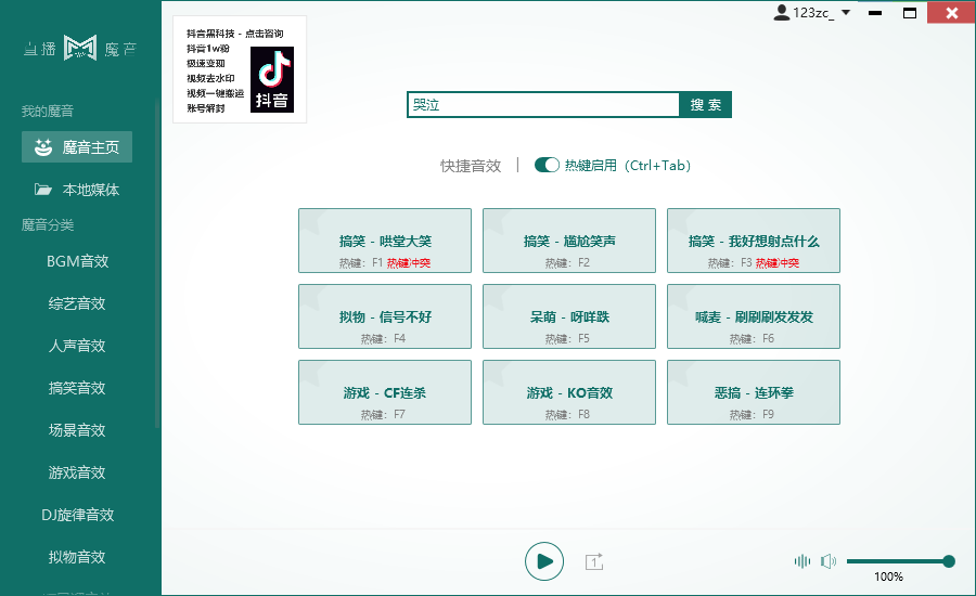 这款直播魔音软件简直就是主播们的神器!它里面有很多音效,比如搞笑的、恶搞的、喊麦的,还有各种游戏音效,种类超多,而且每天还会更新新的音效,总能找到适合自己的。最棒的是,你可以把常用的音效设置成快捷键,这样直播的时候就能一键播放,特别方便。