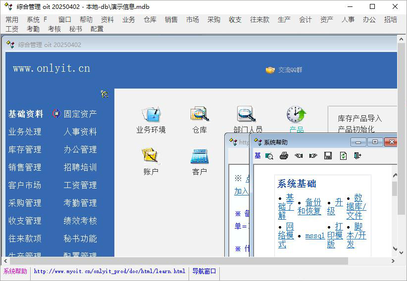 管理者综合管理系统采用access数据库,单机使用永久免费,无任何限制,绿色环保,无任何广告插件,免安装,无其他依赖性,解开直接执行,方便、强大、免费、安全,有需求的用户请下载体验。