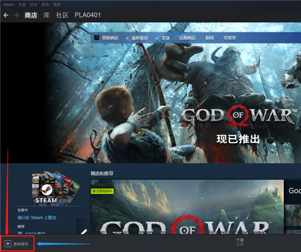 4、然后进入第三方游戏平台Steam客户端左下方的“添加游戏”,选择“在Steam上激活产品”;