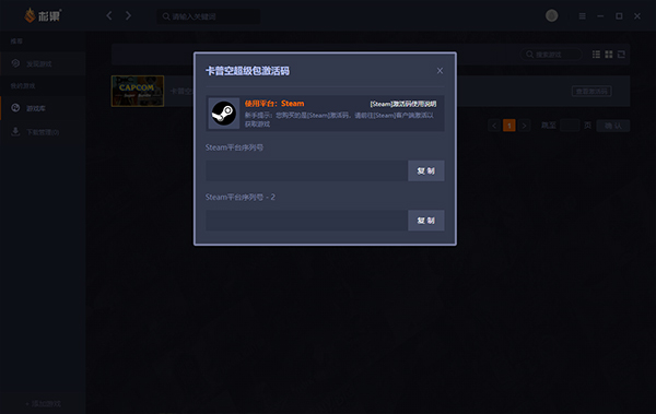 2、来到游戏库界面后首先可以通过标识看到该激活码使用平台为steam,然后点击后方的查看激活码;