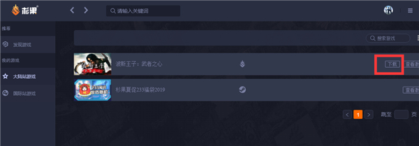 进入客户端后,点击区域-找到对应游戏-点击“下载”,游戏会进入下载状态,待游戏下载完毕后,点击安装即可。