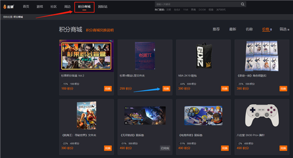 1、在官网首页 ,点击“积分商城”进入商品列表,选择想要兑换的商品,点选右下方“兑换”;