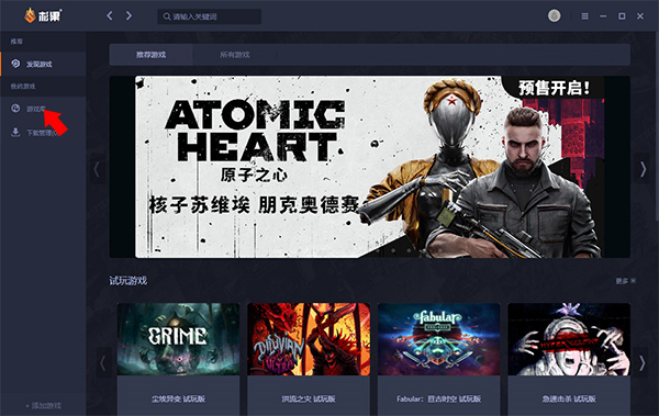 1、打开杉果游戏平台,登录我们的账号后点击左侧游戏库按钮;