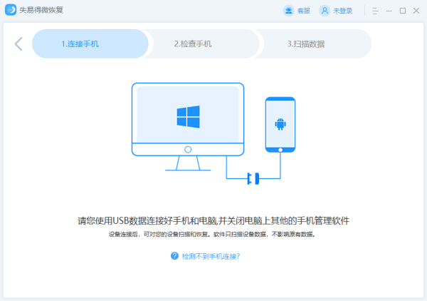 1、通过数据线将手机连接到电脑上后,再打开软件,选择需要恢复的设备。