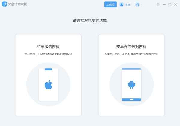 失易得微恢复官方版是一款专门用于恢复微信数据的软件,它可以一键高效恢复微信上被误删的好友、图片、文件、语音、聊天记录等数据,支持安卓和苹果的各种机型,支持免费扫描预览再恢复,可以导出txt和csv文件,还可以自动把HEIC图片导出转换成JPG。软件功能完善,但界面简洁,操作起来又不复杂,跟着步骤做很容易就上手,如果有恢复微信数据需求的用户赶紧来下载吧。