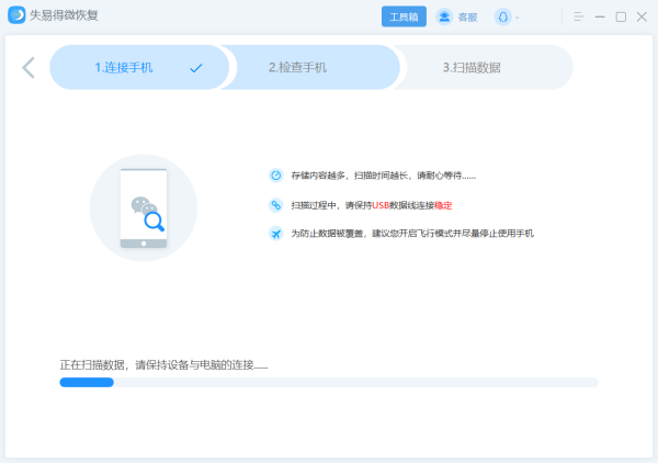 2、给手机开启飞行模式,然后等待软件读取并扫描手机。