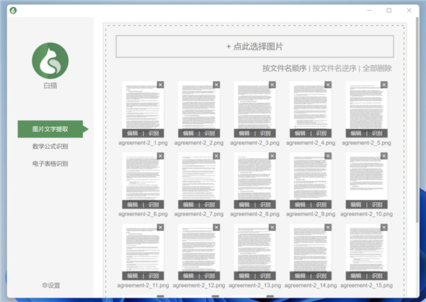你可以使用白描文字识别电脑版软件的批量处理功能,批量进行OCR文字识别,将全部结果合成一段文本。也可以批量生成扫描件,生成PDF。