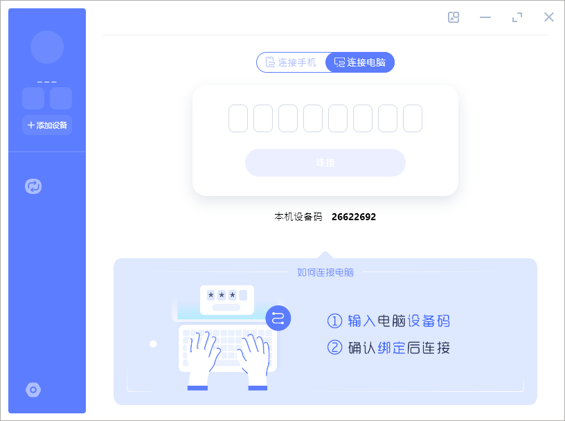3、切换之后,输入设备码即可连接,进行文件传输。