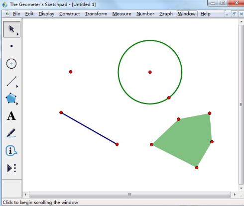 工具箱的第一个工具是移动工具,使用这个可以移动任何画出来的图案,接下来的四个工具都是画图工具了。使用这些画图工具可以画圆、点、线和多变形,根据自己的需要来绘画就可以了。