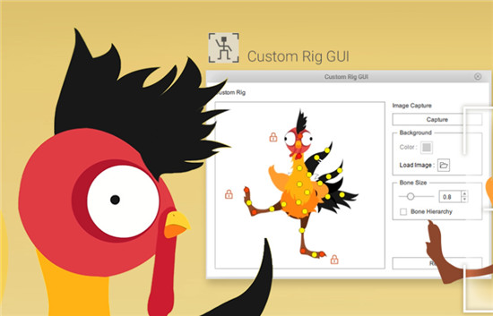 生成IK-ready 2D动画角色,CTA4为基于模板的角色提供标准化IK控件。我们还为Photoshop导入的字符添加了自动IK装备。对于自定义创建的自由骨骼字符,现在用户可以从Custom Rig GUI创建自定义GUI。