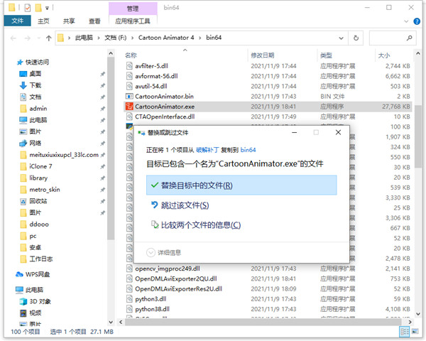 6、将破解补丁复制到软件的根目录下,选择替换原文件即可