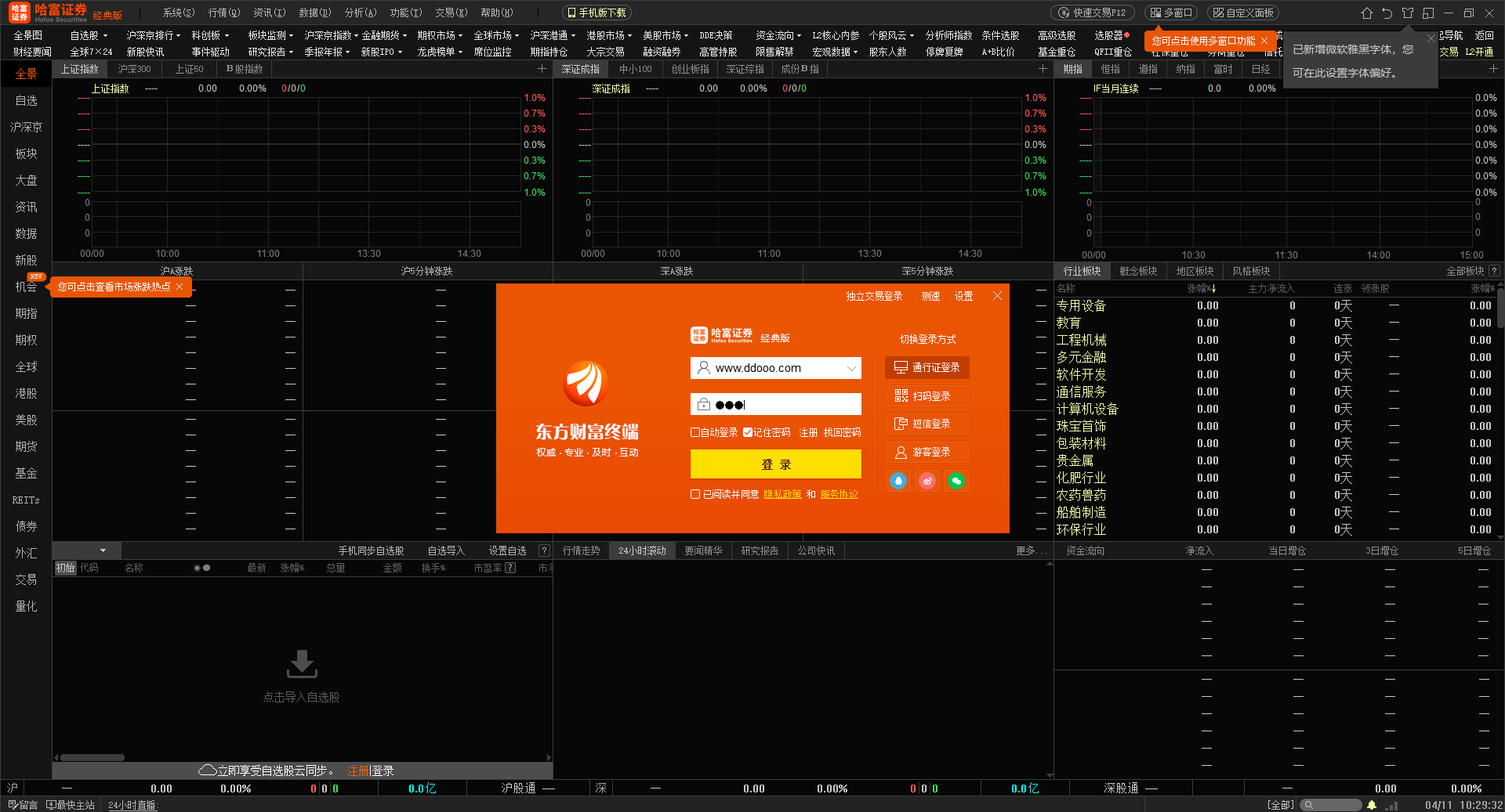 哈富证券电脑版是一款专业可靠、功能丰富的综合性金融投资服务平台,为用户提供了免费且快速的国际证券账户开通服务,通过哈富证券,用户可以轻松地以超低的交易成本进行交易,并享受跨洋专线通道的高速交易体验,让用户在交易中领先一步,无论是在家中、办公室还是旅途中,用户都可以轻松地进行交易,实现真正的实时炒股。