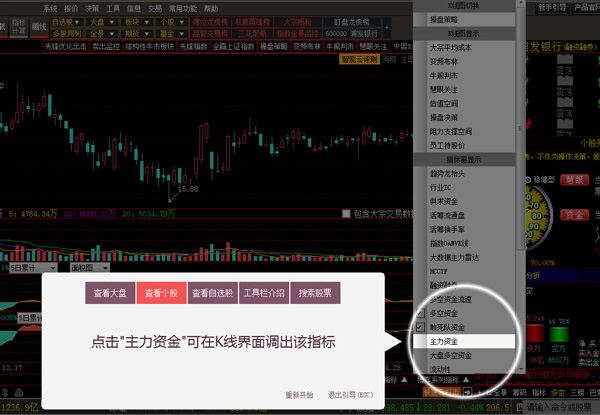 点击“博弈系列指标”试一下调用“主力资金”指标