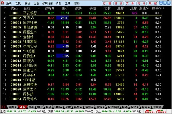 8、敲打“57”回车键后,就出現“无基金A股”报价单。