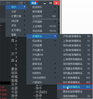 b、科创板涨幅排名入口(快捷键604)