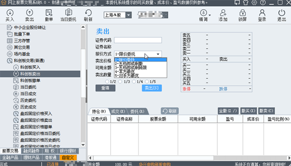 可选择担保品卖出、融券卖出两种委托方式,通过报价方式选择可支持限价委托以及市价委托策略。