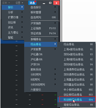 a、科创板综合排名入口(快捷键804)
