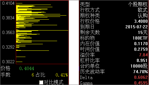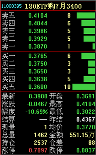 进入标的股票和期权的走势或技术画面,右侧显示了当天该商品的各种信息,我们这里详细介绍期权走势和技术分析画面的十字游标显示的数据情况,股票和指数的信息栏的不在此处介绍