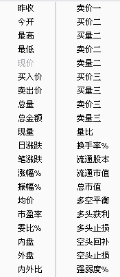 要想更换某一栏的内容,请用鼠标右键点击其栏目名称,然后从弹出菜单上选择新栏目。例,右键点击『现价』栏,弹出菜单后,找到『市盈率』,左键点击它,则该栏目内容换成市盈率。