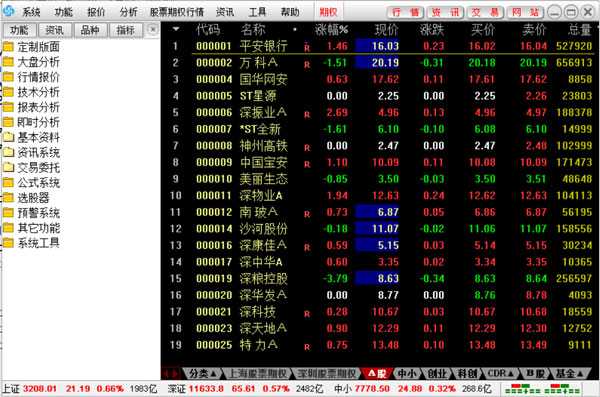 1、完善的报价分析功能,股票分类细致,行情栏目众多,灵活的排序,随时增删自选股与板块股。