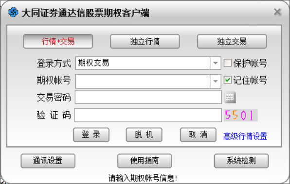 大同证券通达信股票期权分析软件是一款功能齐全,刷新数据最快的股票交易软件,一般又称为大同证券通达信股票期权客户端,不仅集快速下单、行情分析、股市资讯等为一体,而且包含完善的行情揭示及丰富的市场讯息,能够支持沪深行情、股指期货、港股行情、全球指数、国内外商品期货行情、外汇行情。同时软件体积小巧,界面干净简洁,操作起来也极为方便,完善的帮助系统,个性化服务,多任务设计,致力于为用户通过更好的使用体验。另外,大同证券股票期权通达信还拥有股票、港股、指数、基金、商品、外汇、理财等栏目,更具备多账号登录、闪电下单、对买对卖、市价委托、预警系统、趋势分析、自定义组合等强大功能,是目前最好的炒股软件之一,欢迎对炒股感兴趣的朋友下载使用。
