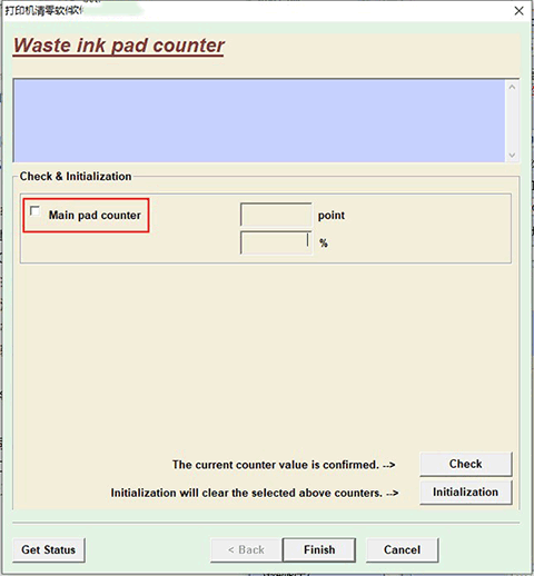 6、让我们来清零废墨计数器,把方框打勾吧,然后点清零计数器 Initialization