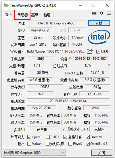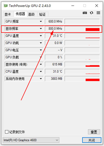 3、在传感器选项卡中,即可查看到显卡显存频率。