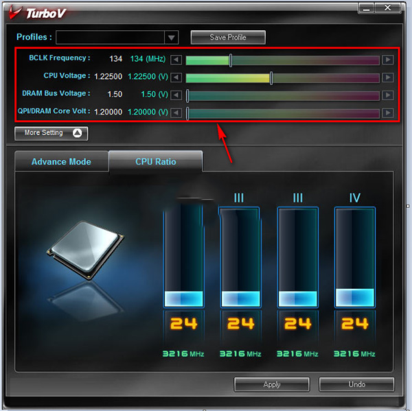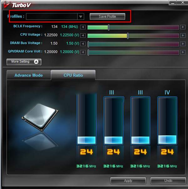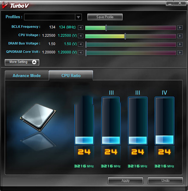 6、该应用程序的界面易于理解,使您能够调整主板电压并以最小的努力应用不同的配置文件。用户还可以使用通过TurboKey功能连接的遥控器来更改配置文件或总线速度。