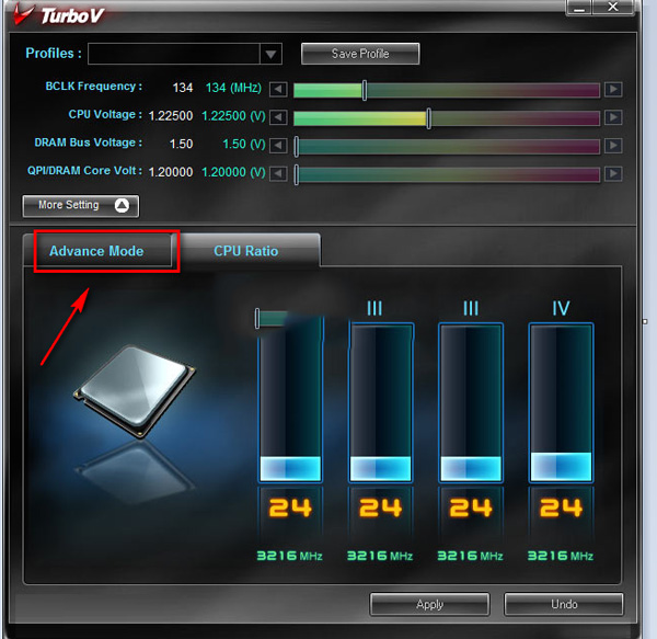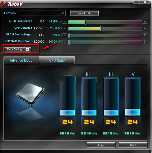 8、若用户需要取消超频设置,我们点击【Undo】按钮即可解除超频设置。