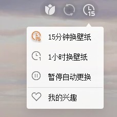 切换频率按钮,可以选择默认的切换时间和选择个人的兴趣,桌面内容会依据您的喜好推荐相关内容。