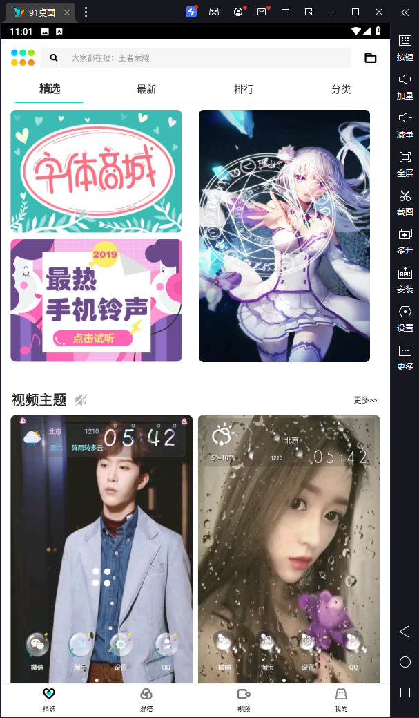 91桌面电脑版是基于安卓模拟器上运行的桌面主题美化软件,该软件界面干净简洁,使用操作起来十分简单,而且里面有着超多好看的主题桌面,精美主题,高清壁纸,明星动漫卡通风景超全分类,不论是二次元,还是宅基腐,你爱的元素都在这里。