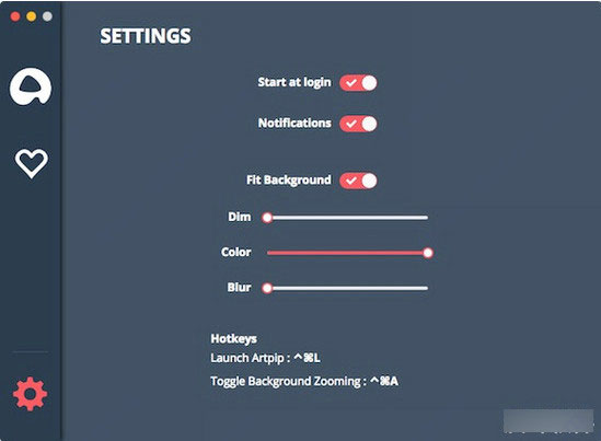 3、在界面左下角的齿轮按钮则是软件的设置按钮,在里面你可以设置壁纸的模糊、色彩、是否使用适合屏幕等设置,还可以使用快捷键来进行壁纸的调试,让你来找一个更好的角度来设置壁纸。