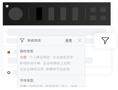 字体类型、授权范围等多个筛选标签帮您快速查找。
