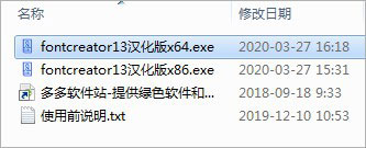1、在本站下载解压,得到fontcreator13汉化版,有 32位/64位两个版本供用户使用;