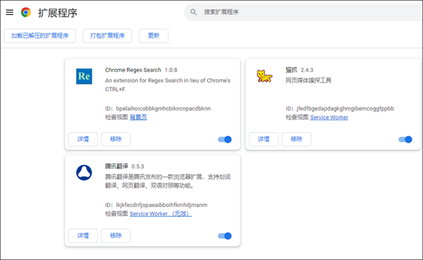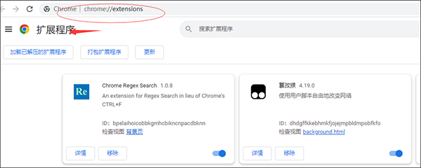 2、首先在浏览器中输入chrome://extensions接着即可进入浏览器的扩展程序界面;