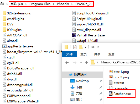 1、下载解压,得到凤凰电影修复软件Digital Vision Phoenix,以及BTCR激活补丁文件;