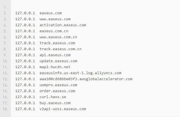 1、运行“EaseUS hosts blocker.cmd”,打开后会弹出一个命令提示符窗口,运行结束后会自动退出。为保证运行效果,请手动查看系统 host 文件内是否包含以下几行信息。(host文件可用记事本打开,host文件目录: