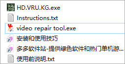 1、下载解压,得到video repair tool视频修复软件+kg注册机;